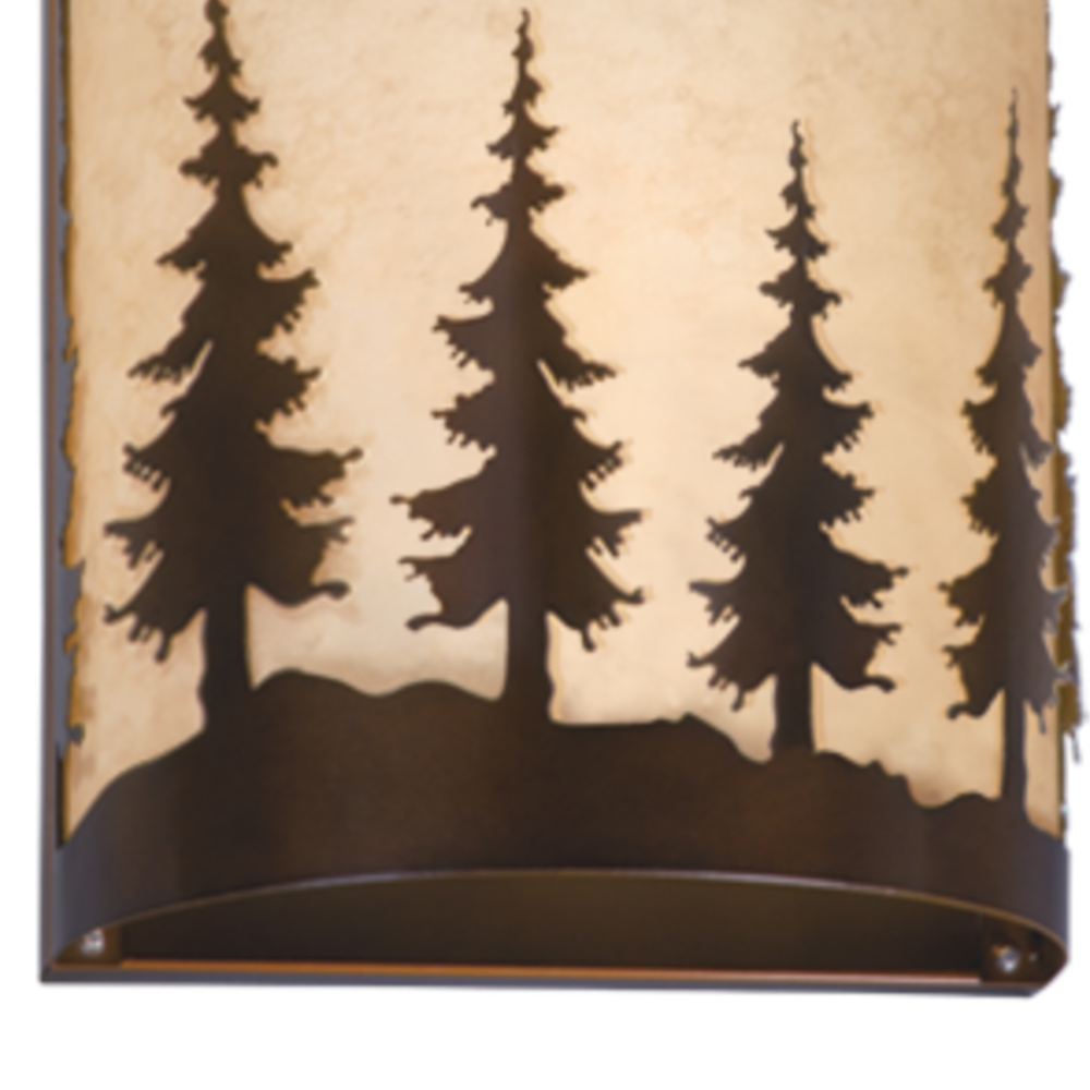 Evoking the spirit of the wilderness, this rustic themed light is clad in a burnished bronze finish and features silhouetted tree imagery atop glowing white tiffany style glass. It is a great choice for a vacation lodge, cabin or suburban home and will complement a variety of home styles: anywhere you want to bring an element of nature. This versatile light is outdoor damp rated and can be used indoors as well as outdoors. Mount these lights on your porch, hallway, or entryway and experience this stylish look for yourself.