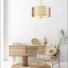 Ziggy Large Pendant in Lacquered Gold. Art Deco Design from renowned designer Karyl Paxton. The intricate design encapsulates a heavy etched glass centerpiece