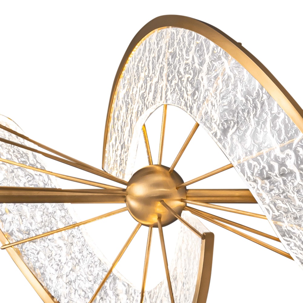 Elevate your kitchen with the Ziva by Golden Lighting Aurora Integrated LED Island Light. This stunning fixture merges bold design with modern functionality. With no shade, the integrated LED technology produces bright light, perfect for cooking and entertaining. Its flowing, sculptural form reflects a sense of movement and artistry in your space. The brushed champagne finish exudes elegance, blending the warmth of gold with a soft silver sheen—perfect for creating a sophisticated atmosphere. Rated for dry locations, this light is especially suited for kitchen islands, providing both utility and style. Enjoy easy installation with sloped ceiling compatibility and an adjustable height (min: 17", max: 126.25"). Overall dimensions are 55"W x 13.5"H x 13.75"D, featuring integrated LED rated for 1080 lumens and customizable color temperatures with the 3CCT feature. Bring a blend of utility and modern artistry into your home with this striking addition. Showroom Only.