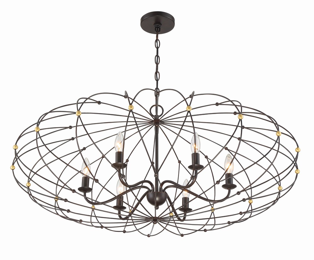 The simplicity of bohemian design takes center stage in our spherical Zucca chandelier. Zucca, which means pumpkin in Italian, features a saucer-shaped metal wire ring frame finished in English Bronze with Antique Gold accents. The woven mixed metal design adds visual interest to a space while still combining just the right amount of sophistication. Whether the look is rustic, industrial, or boho, this light is as versatile as it is stylish.
